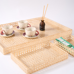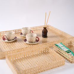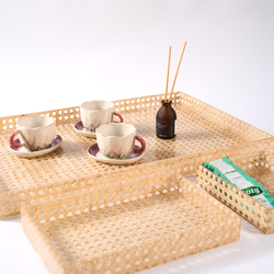 Luxury Handmade Rattan Bamboo Serving Tray - Natural Woven Basket Tray for Tea, Coffee, Snacks, Home & Hospitality
